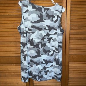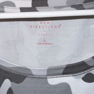 Grey and white New Directions Studio Tanktop. Like new condition- no flaws. Sides are slit as pictured. Size L, but fits more like XL/XXL- measurements below.