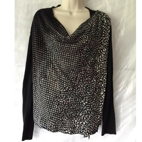 New Directions Sweater PS Black White Cowl Neck Knit Career Modern Chic Artsy