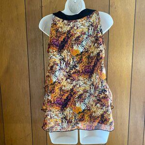 New Directions Top Womens S Sleeveless Layered Blouse Multicolor Abstract Flowy