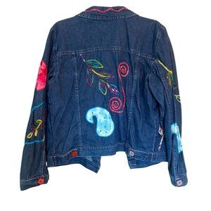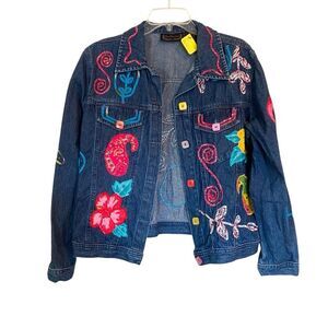 New Directions Vintage Denim Jacket Large Hibiscus Paisley Embroidered Boho