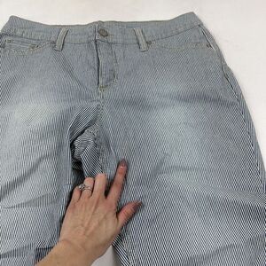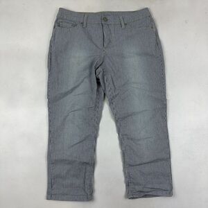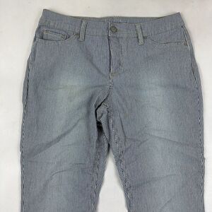 New Directions WEEKEND Blue White Striped Capri Pants Denim Blue Jean Stretch 14
