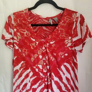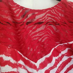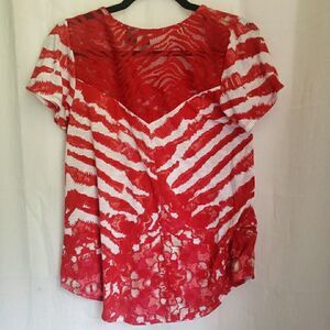New Directions Weekend Red White Shirt Lace Back Women's Size S