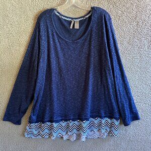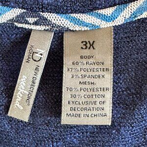 New Directions Weekend Woman 3X Navy Blue Chevron Hem Tunic Top Casual Layering