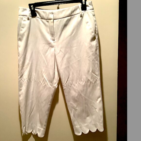 New Directions White cotton crop Pants with scalloped hem, Size 8P