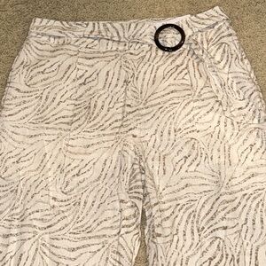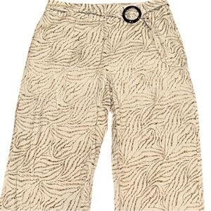 New Directions Wide Leg Linen Pants Desert Sage Tiger Print Ring Belt Detail