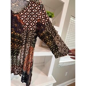 New Directions Woman 3X Asymmetrical Tunic Top Boho Abstract Print Stretch
