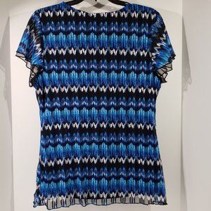 V-neck, Short sleeve, Blue, Chevron/herringbone pattern, Ruffle accent, Frills & ruffles, Boho, Non adjustable waist