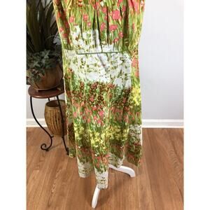 The New Directions Women's Dress in size 18W is a stylish boho-artsy lagenlook shirt dress perfect for summer. Featuring a scoop neckline, sleeveless design, and zipper closure, this lightweight cotton blend dress is ideal for both casual and party occasions. The pleated accents and empire waist add a touch of femininity, while the multicolor floral pattern and strappy sleeves give it a sexy and retro vibe. Machine washable and designed in Sri Lanka, this dress is a must-have for women looking for a chic and comfortable outfit for various seasons.