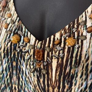New Directions Embellished V Neck 3/4 Sleeve Stretch Tunic Blouse