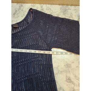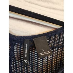 New Directions Women's Blue Netted V-neck Pullover Sweater Size L