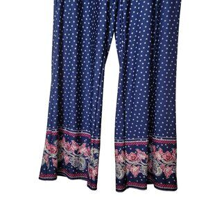 New Directions Womens Blue Paisley Border Print Wide-Leg Pants L Polyester/Spand
