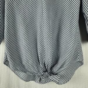 New Directions Womens Blue White Striped Tie-Front 3/4 Sleeve Blouse Medium