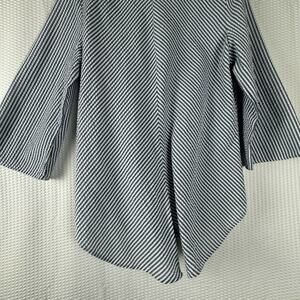 Elevate your wardrobe with this charming New Directions blouse! The blue and white stripes offer a classic, nautical vibe, while the tie-front detail adds a touch of playful sophistication. Perfect for a casual day out or dressing up for a lunch date. This 3/4 sleeve blouse is a versatile addition to any fashion-conscious woman's closet.