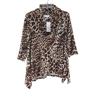 New Directions Plus Women's Leopard Cowl Neck Sweater