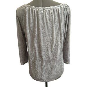 New Directions Womens Petite Gray Off-The-Shoulder Boho Velvet Textured Top PL
