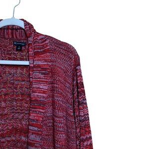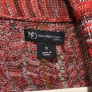 New Directions Womens Plus Size 1X Multicolor Print Open Cardigan Sweater