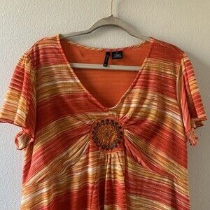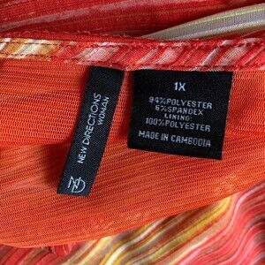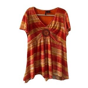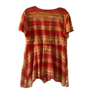 New Directions Womens Plus Size 1X Multicolor Striped V Neck Short Sleeve Blouse