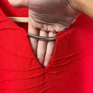 New Directions Womens Red Knit Tunic Pleated Geranium Blouse Sz Small 3/4 Sleeve
