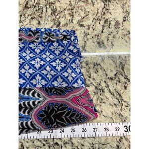 This boho-inspired tunic top combines vibrant blue and pink prints with intricate lace details. Breathable and lightweight, it offers both style and comfort, ideal for casual daywear or vacation ensembles.