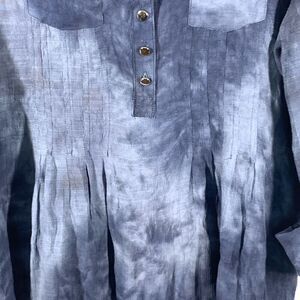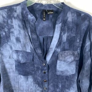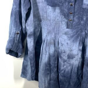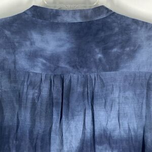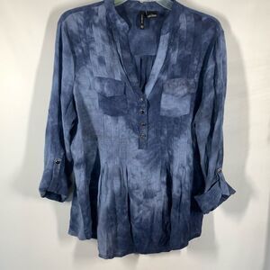 New Directions Womens Tie Dyed Split Neck Roll Tab Sleeve Blouse Blue Size XL