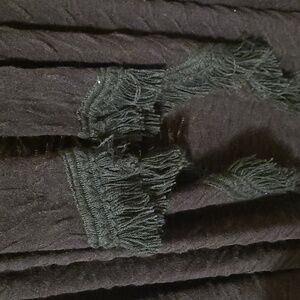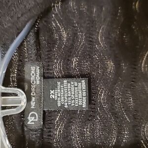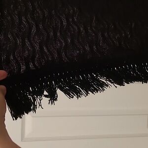 New Directions Women's lightweight Black Shrug with fringe hem size 2X. Its stylish design offers both comfort and sophistication. The sleeves are a thinner material but not sheer. The middle section is textured.
