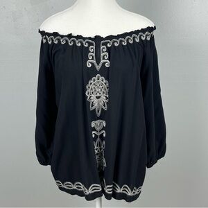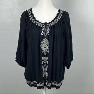 New Directions embroidered 3/4 sleeve elastic neckline top, size PL. Can be worn off the shoulder as well. Great condition. Approximate measurements 22.5” pit to pit, 25”shoulder to hem.