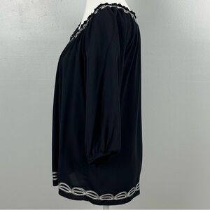 New Directions embroidered 3/4 sleeve elastic neckline top, size PL.