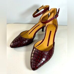 New Direction’s wine color faux alligator ankle strap heels size 7 new condition