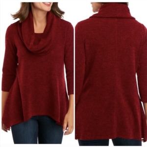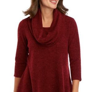 New Directions hacci cowl Neck red Sweater Size S Petite 3/4 sleeves Valentines