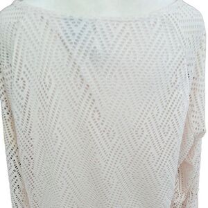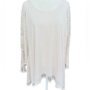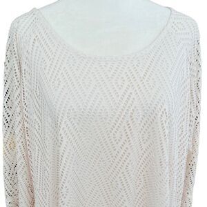 New Directions ivory laser cut lined sharkbite hem top, bell sleeves size XL. Body is lined, sleeves are not. 100% polyester, relaxed fit. Approximate measurements are pit to pit 23”, length from shoulder approximately 30”. Great in any season.