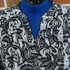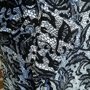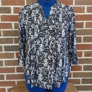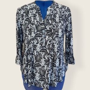 New Directions pleated peplum petite large Henley blouse black and white new with tags. Beautiful dress that is very flattering to your figure with a pleated front.