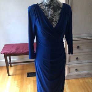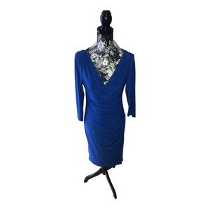 New Directions size 8 royal blue faux wrap midi dress shirred mid section