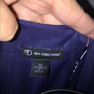 New Directions size XL blue and white lined semi sheer with flair sleeves