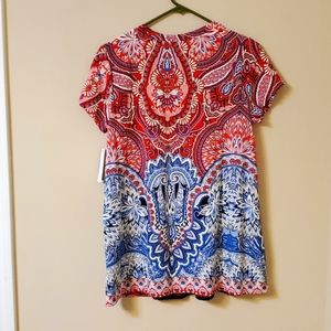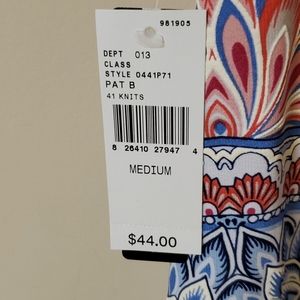 Pink and blue blouse, NWT, crew neck, color is magenta more than the red it looks in the pics