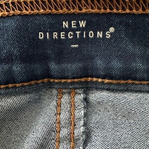 New Directions, darker wash, stretch waistband, tummy slimming, faux pockets for a slimmer look. Cropped just above the ankles.