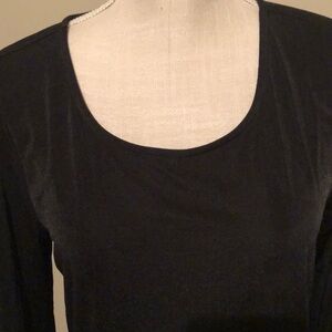 New Directions black tunic with faux under blouse in black print. Poly, spandex. Small. NWOT