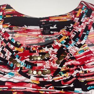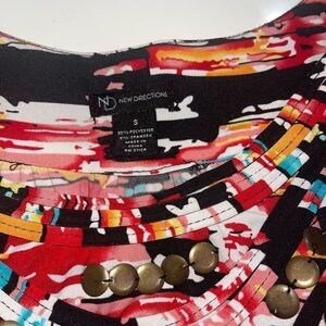 Bright multicolor stripes in red, orange, black, white, blue & yellow