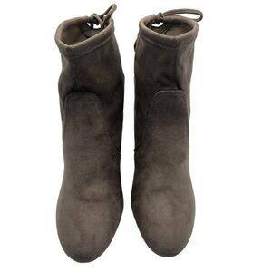 New Directions Hollis Stretch Tie Sock Booties Heels Taupe Size 10