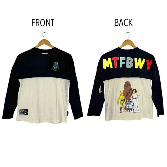 New Disney Kids Black & Cream Star Wars Long Sleeve Shirt Spirit Jersey XL (14)