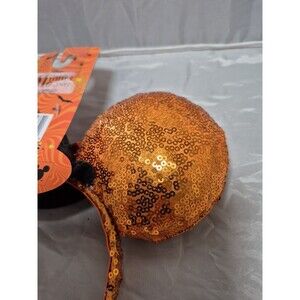 New Disney Minnie Mouse Ears Halloween Black Witch Hat Orange Sequin Headband