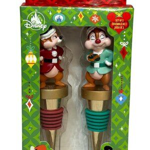 New Disney Parks Chip & Dale Elf Elves Holiday Bottle Stopper Topper Set of 2
