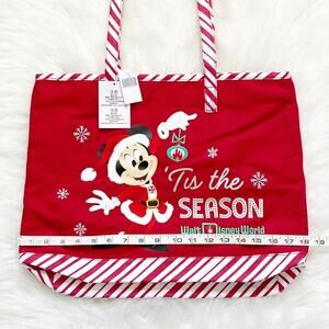 New Disney Parks Christmas Tote Bag Embroidered Mickey Red and White Candy Cane