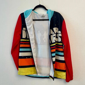 New Disney Parks Star Wars Windbreaker Jacket Size Small Striped Logo Red Blue