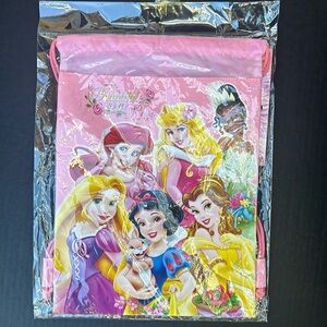 New Disney Princess Hot Pink Drawstring Bag With Coloring Book