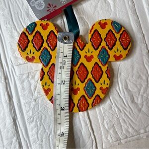 Mickey-shaped ornament with Morocco theme. Features bold red and gold colors. Ideal for Disney fans.