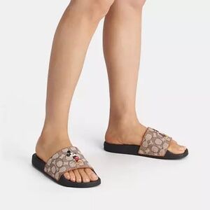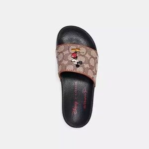 Disney X Coach Sport Slide In Signature Textile Jacquard With Mickey Mouse Embroidery.