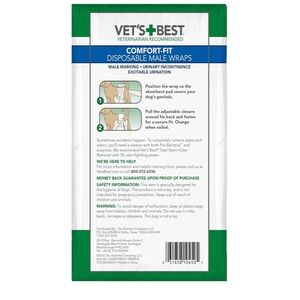 COMFORTABLE - Vet’s Best Comfort-Fit Disposable Male Wraps in the Small size fits male dogs with an 12 - 18 inch waist.