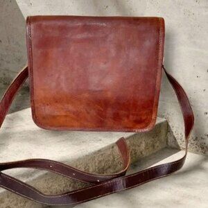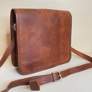 New Distressed Leather Small Messenger Bag 11”x10”