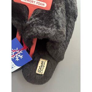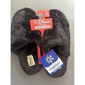 New Dluxe by Dearfoams Comfort Women's Large 9 - 10 Black Plush Clog Slippers