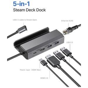 New in box: Docking Station for Steam Deck/ROG Ally/Legion Go/MSI Claw, 5-in-1 Steam Deck Dock with HDMI 4K@60Hz, 100Mbps Ethernet, Dual USB A 2.0 and 100W Charge Compatible w Steam Deck OLED